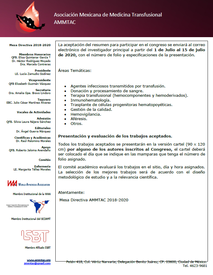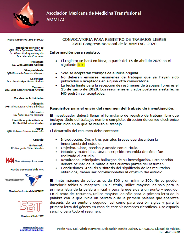 su preregistro a la AMMTAC, su registro a sus congresos y trabajos libres o bien para