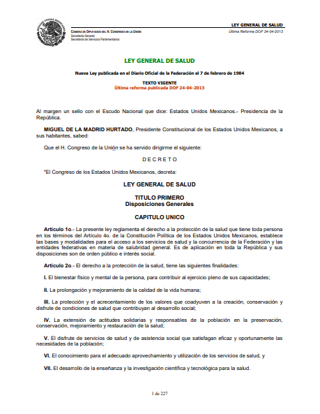 Nueva LGS publicada el 24-04-2013, la cual contiene cambios fundamentales para los Bancos de Sangre; entre ellos los artículos 197, 198, 313, 315, 316 316 bis, 317; Capitulo II de Donación y III de trasplante.